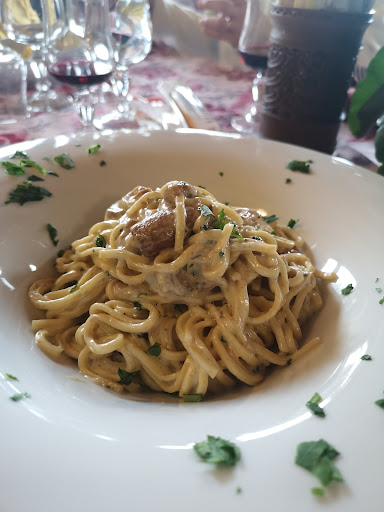 Purtroppo abbiamo avuto un'esperienza sgradevole: un pezzo di salame è andato di traverso al mio suocero e gli ha bloccato esofago. mentre lui era in bagno con la suocera, ho chiesto alla signora di darci un baracchino x gli antipasti non consumati e farci il conto che dovevamo andare in ospedale in quanto il suocero continuava a stare male. Dopo un bel po di attesa signora molto poco gentilmente mi ha portato il baracchino e poi è scomparsa, quindi ho dovuto chiamare di nuovo un cameriere per richiamarla a farci il conto. Arrivata con tutta la serenità e senza fretta alcuna, persino si è fermata davanti a me a spiegare ad altra cliente cosa sia successo al mio suocero facendomi aspettare, per di più facendoci pagare 43 eur per 2 antipasti e il vino che non abbiamo nemmeno consumato. Va beh. Ci ha trattato come fosse colpa nostra. Sinceramente, dopo un trattamento così nel momento di difficoltà, non ci metto più piede. Mi spiace........