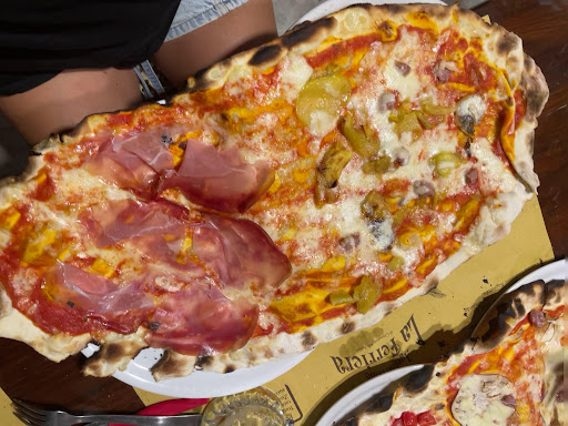 Presi inoltre 2 piatti di pasta al ragù per i bambini. Non riportati nel menù. Appena sporchi di sugo, tant'è che avevano un triste e pallido colore arancione. Trovato un signor capello (moro) in uno dei due piatti e rimandato in cucina. Ok. Può capitare... Dato che per prepararli ci sono voluti 40 minuti (Che hanno reso la birra un gustoso brodino caldo...), non volendone attendere altrettanti, abbiamo diviso in due uno dei due piatti ed annullato il secondo... che è invece ricomparso nel conto a causa di mancata comunicazione tra cameriera e cassa, comunque non pagato. Una pizza è arrivata con un buco delle dimensioni di una mela e la cameriera ci ha chiesto che se non fosse andata bene, l' avrebbe fatta rifare...Perchè non rifarla direttamente invece di provarci? Boh...? Alla risposta: "beh, direi... dopo il capello, almeno la pizza...", è giunta la replica della cameriera con un seccato: "eh, basta dirlo, eh?"... Non giudico... fate voi... Anche la titolare non è la simpatia fatta persona, diciamo che forte della grande affluenza, non si preoccupa molto di fare buon viso ai clienti.