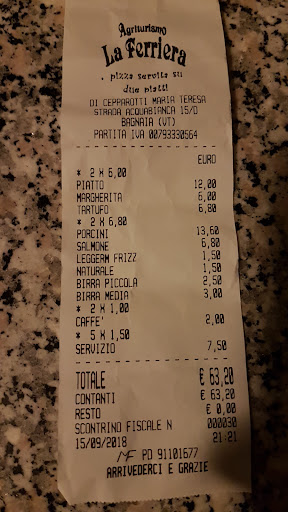Read moreLocation nella media, niente di particolare, ma comunque accogliente . Antipasto proposto e servito era un po povero, pizza nella media. Ma, non può definirsi agriturismo perché dal menù, dai posti a sedere e dal momento in cui non pone nel menù cibi con materie prime fatti da loro, non può definirsi tale. Poi purtroppo la signora mi ha praticamente tritato davanti i miei amici.. scarsissimo livello professionale e mi viene da dire anche educativo.. dopo aver chiesto svariate volte a svariati camerieri, (6 volte per l' esattezza ) siamo rimasti a secco, senza birra in 4 pizza arrivata e finita ma a secco. Dopo aver chiesto da bere anche al pavimento ho deciso io di portare la brocca da loro. Questo li ha fatti adirare perché forse colpiti dal mio gesto ...e a questo punto dopo non aver pronunciato alcuna parola che mostrasse mancanza di rispetto o educazione nei loro confronti, la signora ha portato da bere immediatamente ed ha tirato fuori la scusa che non riuscivano a mettere più da bere dall impianto, e che tutti possono sbagliare. Poi ordinate e pagate n. 2 grappe,servite 1. Allora io dico 1 se voglio farmi servire alla caxx di cane .. Non esco proprio. 2 se davvero avevate problemi nel portare la birra almeno dopo un ora potevate dirlo ed avremmo preso un altra bevanda e tutti sarebbero stati contenti e felici. Ma a quanto pare il risultato è stato che la pizza abbiamo dovuto farla scenedere a secco. Osteria apparte ai clienti si serve da bere per lavorare. Locale da evitare se potete sopratutto se è pieno perché non riescono...