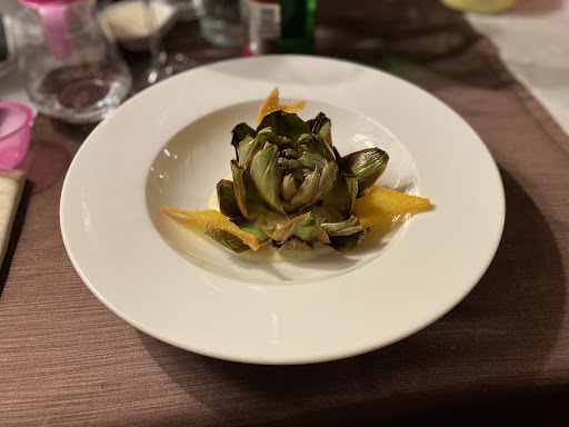 A restaurant within a resort. Totally quiet, elegant. Nice menue, big wine list. Attentive service. Fork discount applied without problems. A beautiful ambiance. Difficult to find as Google maps isn't able to bring you to the right address. Don't enter the one way road near terme dei Papi. Turn right before the terme and Google will show you the right way to the resort. The name of the restaurant is not on the fence. Ring the left bell at the closed fence is the resort. However, it is a...