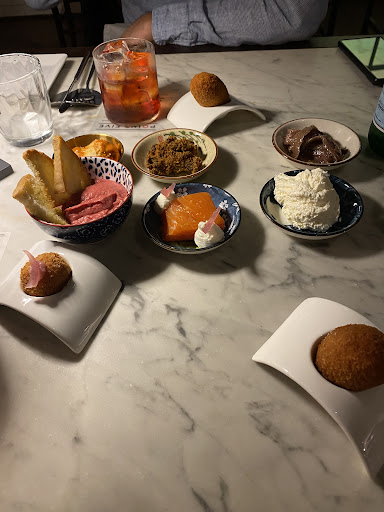 Read moreLocale dall’architettura suggestiva elegante e ricercata look dallo stile industrial. I maitre di sala,ti accolgono con un benvenuto composto da dell’ottimo pane di propria produzione e dell’ ottimo olio. Ho scelto alcune tapas per iniziare. Alici del mar cantabrico, burro montato e pane crostato. Tapas sfiziosa. Prosciutto iberico ed il salame di cinta senese. Una prelibatezza. Spiedino di Gambero rosso( piccoletto)cotto alla brace, latte di cocco e clorofilla,Tapas dal gusto armonico. Una porzione di Arrosticini,un’ intermezzo piacevole tra una tapas e l’ altra.(non artigianale). Ed infine un fritto di calamari spillo sfiziosissimi,accompagnati da maionese alle erbe. Il tutto servito da dell’ ottimo pane. Come prima portata, un tagliolino mantecato al burro e tartufo bianchetto. Perfettamente equilibrato e ben eseguito. Da provare. Per la seconda portata, fuori menù una Tagliata di manzo Galiziana, osso buco, mash di patate e salsa di fondo. Mi sono affidato allo chef per la cottura della carne, ed è stata eseguita perfettamente.(deliziosa)Per concludere due dolci, il gelato al latte di capra con mousse al miele e cialda croccante al sesamo ed il gelato alla nocciola,mousse al mascarpone, cialda cataifi al caffè e crumble al cacao. Entrambi molto buoni,goloso come sono,avrei fatto spazio anche per un terzo dessert. Mi sento di dire che tornarci è certamente un’ ottima idea se questo è lo standard. Che siate local oppure no o indipendentemente dalle vostre tasche, le competenze in cucina ed in sala vi faranno apprezzare qualsiasi pietanza voi decidiate di scegliere. Contento che le mie aspettative siano state piacevolmente soddisfatte. Ringrazio la brigata e lo staff in sala. Locale ottimo per un aperitivo o per una cena elegante.Nota: accettano benevolmente i nostri fedelissimi cani, purché ovviamente siano ben educati e non siano motivo di disturbo per gli altri commensali.Da tenere assolutamente in...