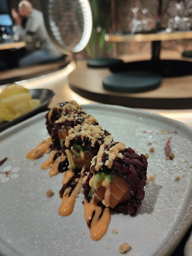 Read moreSono stata in questo ristorante un annetto fa e è stata una delle esperienze di sushi più buone...l'ultima volta l'ho rivalutato, è cambiato tutto e in peggio di gran lunga! Location molto bella, forse l'unico punto a favore. Riguardo al menu, non mi è mai capitato di star per scoppiare solamente al primo ordine: è arrivato tutto subito, il che è sintomo di piatti già pronti, tanto che i roll per cominciare erano porzioni gigantesche, non ci hanno permesso nè di ordinarne altri tipi, ne di terminare quelli che avevamo preso; il riso si sfaldava, l'interno era gommoso e freddo. I ravioli erano grandi e gommosi ma comunque tra i meno peggio. Il salmone non sapeva di nulla e il carpaccio di tonno ancora meno. L'unica cosa buona, da amante di alghe wakame, erano proprio quelle, tranne quelle che stavano su un uramaki accompagnate da una salsa al lime (credo) che rovinava il tutto. L'unica cosa calda sono stati gli involtini primavera. Inoltre, sul nostro tablet non c'erano i ravioli alla piastra, pietanza che abbiamo visto arrivare in altri tavoli, inspiegabile! Di rito prendiamo il dolce, ma ieri bocciati anche i mochi, sopratutto al tiramisu: non erano dolci e tanto meno sapevano di tiramisu. Il personale ci stava con il fiato sul collo, ad eccezione di un cameriere molto carino,gentile e disponibile...per il resto stavano impalati vicino al nostro tavolo senza toglierci gli occhi di dosso, una cosa impressionante. Qualità sicuramente peggiorata, NON...