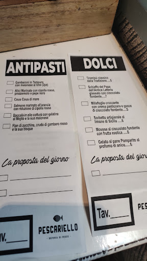 Il locale si trova in una zona comoda e con parcheggio L’arredo, le luci e l’ambiente in generale mi sono piaciuti e il personale è stato molto gentile e presente 😃 Abbiamo provato la formula menù all you can eat, trattandosi di un’osteria di pesce ero molto curiosa di scoprire che piatti fossero proposti Ci è stato spiegato il modo in cui ordinare e il servizio è stato attento e veloce Il menù degli antipasti dà varie scelte, a mio gusto tutte interessanti, abbiamo provato quasi tutto, le porzioni da assaggio secondo me sono un’ottima idea xchè provi la pietanza e nel caso non sia di tuo gusto non va sprecato cibo, se il piatto ti piace particolarmente, come da loro spiegato, ne puoi ordinare anche 10 🤭(x alcune cose ero tentata😄😄) Le polpette, i supplì e i fritti ben fatti, croccanti e gustosi, le tartare di tonno e salmone erano ben abbinate a sapori diversi dal solito(!) A metà degli antipasti abbiamo consegnato il bigliettino con l’ordine dei primi, anche lì molta scelta tra classici e novità, noi abbiamo provato 2 abbinamenti che ci sembravano interessanti ed infatti lo erano La porzione era giusta per non farti riempire di pasta e non farti prendere altro per capirci (secondo me ottima idea anche qui) Nessuna traccia di sabbia nel piatto, condimenti non carichi di prezzemolo e peperoncino, a mio gusto perfetti Tanto per gradire abbiamo provato anche quasi tutti i secondi e le verdure, calamari e polpo strepitosi, verdure ripassate non stracotte, un po’ piccantine come vuole la tradizione I dolci fatti a mano finalmente, non i gelati dei soliti all you can eat Ah cosa molto importante, secondo me: nel condimento ho sentito un sapore dell’olio particolare, anzi direi familiare, un sapore assolutamente diverso da l’olio “sciapo” commerciale: ho chiesto al capo ed infatti x condire viene utilizzato l’olio di Canino, quindi: locale, biologico e con il vero sapore dell’olio di campagna So di che parlo xchè ho le piante anche io X chi capisce questo valore aggiunto più la qualità del pesce, che era freschissimo e cotto alla perfezione, la cena vale ampiamente il suo prezzo Ci...