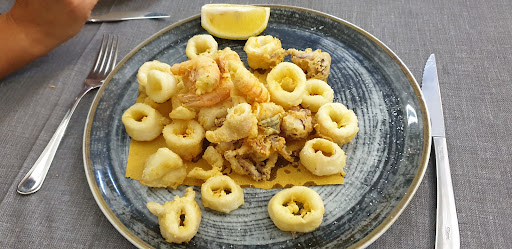 Read moreScoperto per caso grazie ad un' app sul cellulare che uso per trovare ristoranti quando sono in giro, e devo dire che è stata una piacevolissima sorpresa! Ambiente accogliente(dall'esterno non sembrerebbe e invece....), proprietari affabili e cordiali, in particolare la signora che ci ha servito al tavolo, bagni puliti ma soprattutto OTTIMO il cibo! Non ci aspettavamo di mangiare cosi bene e senza spendere un occhio della testa! Antipasto di alici fritte buooooooneeee(come le faceva la mia mamma!)primo piatto spaghetti alle vongole e pachino ec-ce-zio-na-le, la mia amica ha preso invece gnocchetti con rana pescatrice...Buonissimi! Non abbiamo preso il secondo perché le porzioni erano abbastanza abbondanti e volevamo assolutamente mangiare il dolce e abbiamo fatto bene: il tortino con cuore di cioccolato fondente fuso all'interno...maaammma mia che buono!!! Se siete goloosi ve lo consiglio vivamente, cosi come il dolce alla crema e cioccolato. Molto bella anche la presentazione dei piatti. Presi 2 calici di vino bianco(Passerina) un litro di Acqua e 2 caffè abbiamo speso 25 euro a testa!(n.b. devo dire però che ci è stato decurtato un 20% sul cibo grazie all"app altrimenti avremmo speso circa 4.50 euro in più testa...ma sarebbe andato bene lo stesso per quanto siamo state bene!) Sicuramente ci torneremo se dovessimo fare un'altra gita...