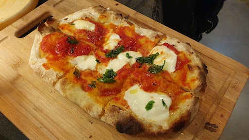 Una stella. Non si può dare di più. Locale visitato due volte. La prima volta due persone nulla da dire, panino ottimo. Seconda volta disastro totale. Un venerdì sera, tavolo di circa 10 persone. Sebbene il locale era piuttosto vuoto abbiamo dovuto aspettare un bel po’ di tempo per ricevere quanto ordinato. Alcuni di noi avevano scelto un panino semplicemente per l’impasto di tipo diverso (quello scuro) ma all’arrivo la cameriera porta il panino con l’impasto classico e giustamente a domanda formulata risponde: “era finito”. Ovviamente quando già era pronto il piatto, non una cosa che poteva essere detta prima come di solito avviene in un mondo normale. Nell’ordine era compresa una margherita ed all’atto dell’ordinazione al cameriere gli è stato ribadito diverse volte che doveva essere senza basilico. Ovviamente la cameriera già menzionata, porta a tavola la margherita con il basilico. Glielo facciamo notare, riporta la pizza dentro ed esce dopo due secondi e magicamente il basilico era sparito. Onestamente sentendomi preso in giro, l’errore ci può anche stare ci mancherebbe ma non credo che mi serviva la cameriera per togliere una foglia di basilico dal piatto, mi alzo con la pizza in questione e la porto dentro chiedendo di rifarla da capo. Alla fine abbiamo pure pagato. Ovviamente mai più.