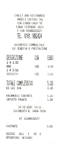 Read moreAspettare quasi mezz'ora prima che di fermi qualcuno, dopo aver richiamato l'attenzione più volte e poi altra mezz'ora per ricevere due caffè (c'erano poi solo quattro tavoli occupati da servire)... (inviata nel tardo pomeriggio del 21/10/2021) Questa è stata la risposta del Chalet di poco dopo: "Lei ha sbagliato locale !!! da circa 15gg., facciamo solo ristorante con notevole successo. Metterci 1 stella, vanifica tutto il nostro buon lavoro. Le chiedo cortesemente di ritirare il suo giudizio. Luigi 370 311 7377 volesse parlarne telefonicamente, grazie" Alla quale rispondo: "Spiacente, non ritiro il mio giudizio, ma lo preciso. Non ho sbagliato locale!!! Ho pagato i due caffè in questione 5.00 € e cioè lo stesso prezzo pagato in Riva degli Schiavoni ed 1 € in meno di quanto pagato a Piazza San Marco e sotto il Ponte di Rialto (preciso, nel caso che non lo sapesse, che sono i tre punti più importanti e più cari di Venezia). Oltre a riconfermare i punti 1. e 2. lo scontrino allegato dimostra che la data è antecedente ai circa 15 giorni di cui parla. Infatti si tratta di domenica 10 ottobre e alle ore 16:36. Aggiungo inoltre che due signore, arrivate una decina di minuti dopo di noi e sedutesi vicino, si sono lamentate per lo stesso motivo; ed una coppietta dopo aver aspettato inutilmente per un bel po', se ne è andata. Ma forse la cameriera che serviva in giardino era la stessa che alle 16 del pomeriggio serviva da sola una cinquantina di clienti a pranzo all'interno del locale.5. Non sono in grado di giudicare il ristorante, ma posso dire che spesso alle belle foto non corrisponde la bontà del contenuto. Il notevole successo di cui parlate si nota anche da alcune recensioni negative / pessime. Credo che anche imparare l'italiano non le farebbe male: "volesse parlarne telefonicamente, grazie" non è il massimo dal punto di vista...