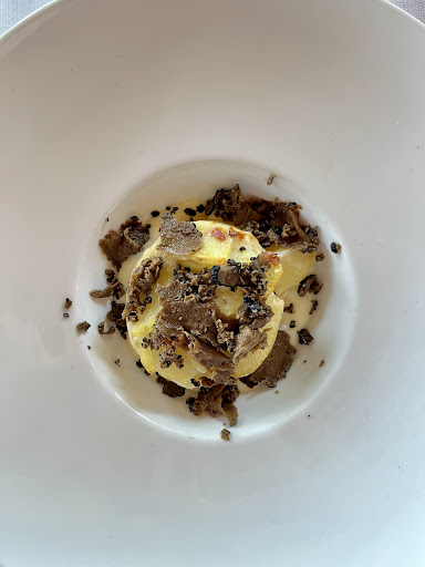 Read moreIl porcino è un ristorante molto curato sotto tutti i punti di vista. Sia l'ambiente che il cibo denotano una certa cura dei dettagli. Diciamo che in generale ho scoperto un posto un po' al di sopra della media dei locali sui colli. Ho assaggiato, in occasione di un compleanno, un tortino di patate con fonduta di formaggio e tartufo, dei ravioli al radicchio (super) e la guancetta di maiale su letto di purè. Patate al forno non molto consistenti a differenza della verdura cotta ottima. Vista molto piacevole sui colli circostanti e l'abitato di Cortelà. I prezzi sono pari a circa 10 euro per antipasti e primi, 15 per i secondi. Lo consiglio per chi cerca qualcosa di più della classica...