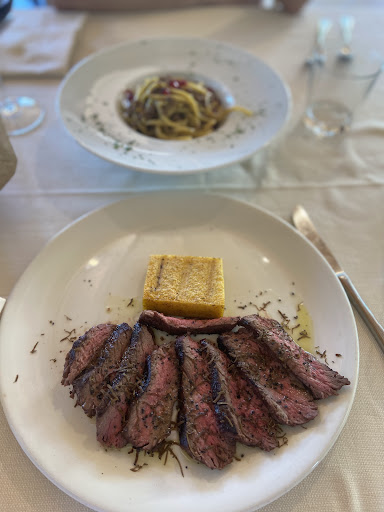 Come antipasto, il flan di asparagi era semplicemente squisito, un inizio perfetto. A seguire, il baccalà mantecato servito con polenta taragna, insalatina e noci era formidabile, un piatto ricco di sapore e ben bilanciato. Anche i due secondi di carne che abbiamo assaggiato erano eccellenti, cotti alla perfezione e pieni di gusto.