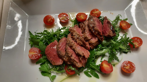 Abbiamo mangiato un calzone ai formaggi (buonissimo!), una tagliata (ottimo taglio, condimento e cottura, vedi foto), una battuta (spettacolare, ottima materia prima, magra come piace a me), un primo pomodoro e pecorino (unica nella sua semplicità, dove semplice non vuol dire facile!), il dessert anche molto curato e super buono.