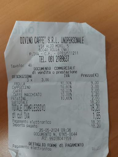 Sullo scontrino non riporta il servizio a tavola, ma ripeto ci hanno invitato a sederci fuori dopo aver preso le 3 frolle al banco!!!
