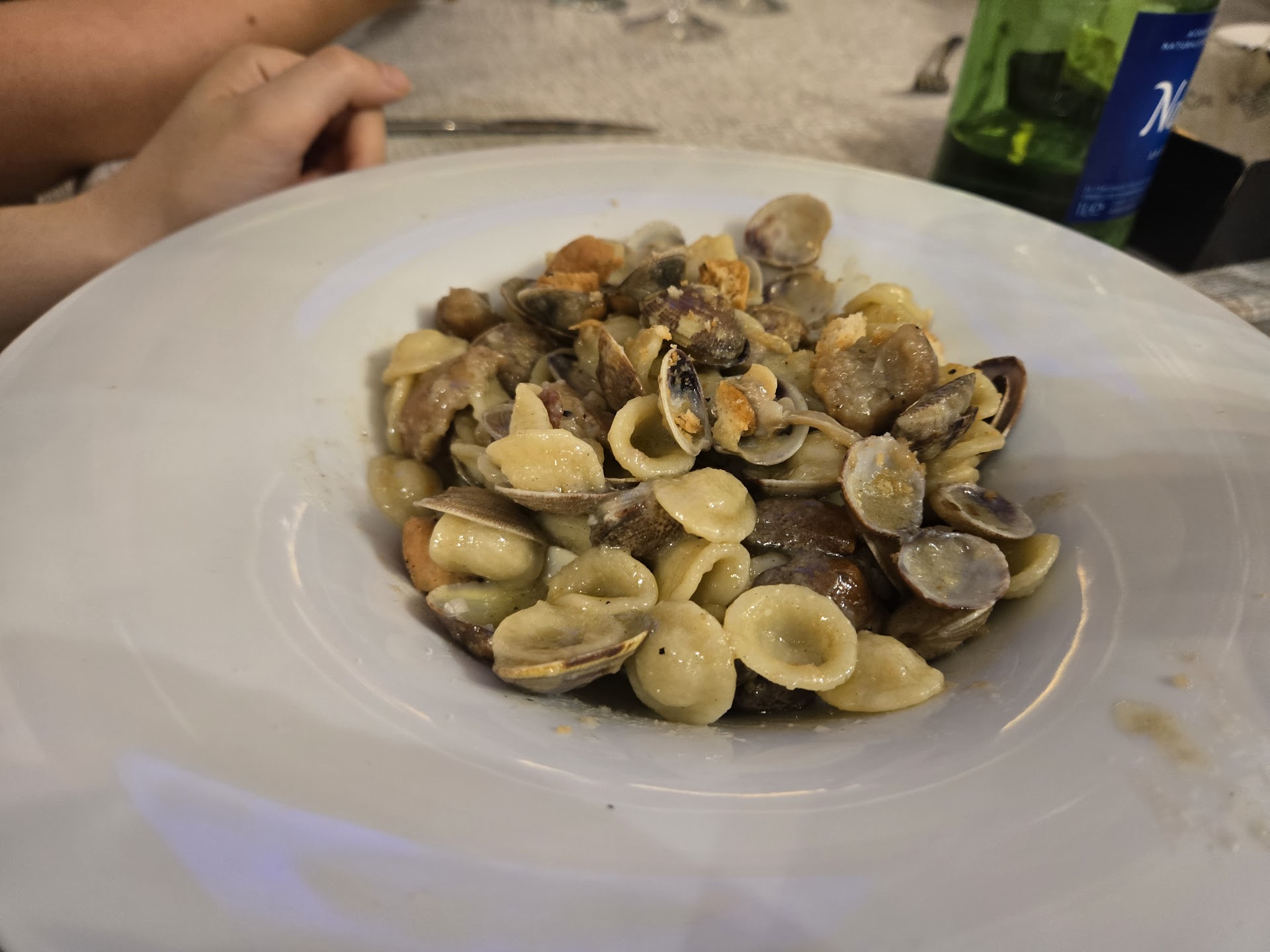 Le portate dell'antipasto erano cinque, descritte come una di frittura (paccheri ripieni di ricotta), due di mare e due di terra. Tuttavia, le porzioni erano misere rispetto a quelle che venivano servite in passato. Non è la riduzione del menù a farmi decidere di non tornare più, ma l'atteggiamento del cameriere Raffaele. La sua insistenza e il tentativo maldestro di prendermi in giro sono stati inaccettabili. Inoltre, le recensioni su Google confermano che il menù è cambiato di recente, contrariamente a quanto affermato dal cameriere.