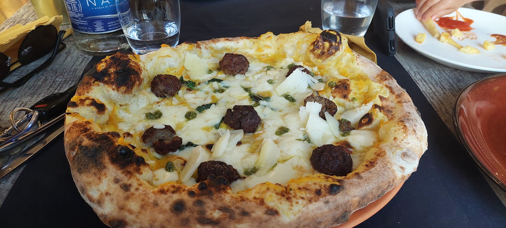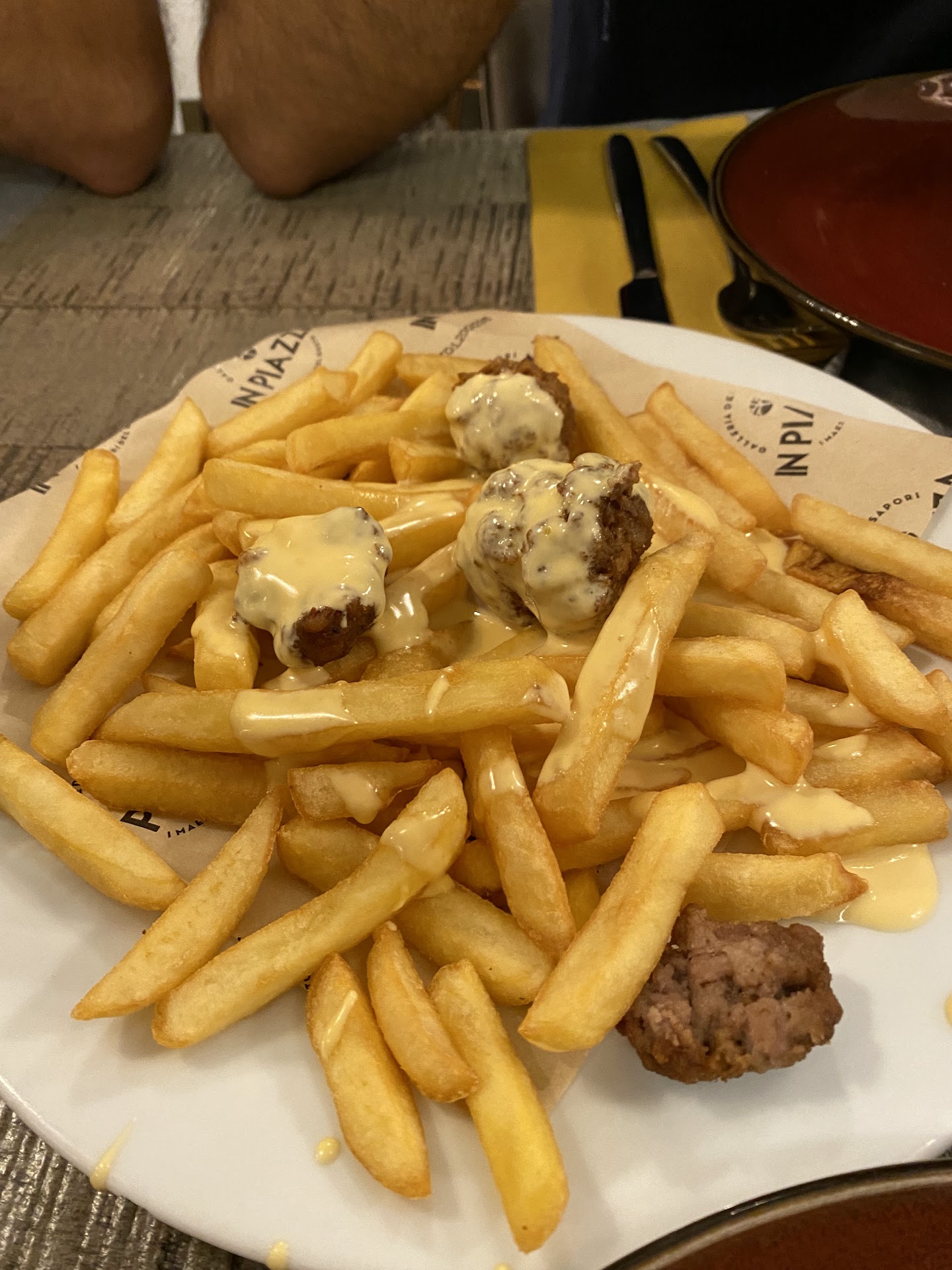 Sono qui a raccontare la mia esperienza di sabato sera in questa gigantesca location che, situata accanto al Liberty City Fun (al quale si può accedere esternamente) aveva tanto attirato la mia attenzione grazie alle numerose sponsorizzazioni e recensioni positive sui social. Prima ambiguità: telefonando, mi è stato detto che non era possibile prenotare un tavolo il sabato oltre le 20:30, ma dal loro sito web sono riuscito a prenotarne uno senza problemi, per le 22. E su questo sorvoliamo, anche perché la prenotazione è stata accettata e ci siamo accomodati per tempo. La location è molto suggestiva e soprattutto enorme, niente da dire su questo. Peccato che proprio noi siamo capitati nella sala peggiore: lunga e stretta, quindi la confusione già solita di un sabato sera risultava ancor di più amplificata. Dalla visione del menù, curato nei dettagli e con foto per ogni pietanza, le mie aspettative erano aumentate ancor di più, per poi crollare vertiginosamente come Icaro quando ho visto le pietanze effettive serviteci. La porzione di patatine con polpettone e fonduta di cheddar, pagata ben 6€, era molto deludente: patatine surgelate, letteralmente 3 polpettine (per altro anche fredde all’interno, probabilmente non fritte bene) e cheddar dal sapore molto anonimo (allego foto, vedere per credere). Il crocchè classico, pagato 2€, devo dire la verità, molto buono. Ma quello che ci ha delusi maggiormente è stato il crocchè special mortadella, stracciata e pistacchio: dal menù ci aspettavamo un qualcosa di elaborato, di gourmet, invece altro non era che lo stesso crocchè classico di 2€ con tre, ribadisco tre striscette di mortadella e un po’ di stracciata, pagato ben 3.50€ (allego foto sia di quello presente nel menu che di quello nel piatto). Arriviamo alle pizze: per quanto mi riguarda, ho preso una “Tre P” e sono rimasto soddisfatto, soprattutto dal sapore. Almeno io dunque non darò un giudizio complessivamente negativo. Quasi tutti gli altri invece hanno avuto da ridire sulla qualità degli ingredienti sulla pizza, in particolare chi aveva ordinato la carciofi style, sulla quale lo speck era così secco e gommoso che mi ha ricordato quello che trovi nel banco frigo dei discount. Anche il servizio non è stato dei migliori: non parlo dei tempi di attesa, ma una bottiglia d’acqua abbiamo dovuto ordinarla 3 volte prima che ci venisse portata. Esperienza nel complesso negativa perché ci aspettavamo molto, ma MOLTO di più, viste le potenzialità della location che, al suo interno, ha anche sale enormi per bar, pasticceria...