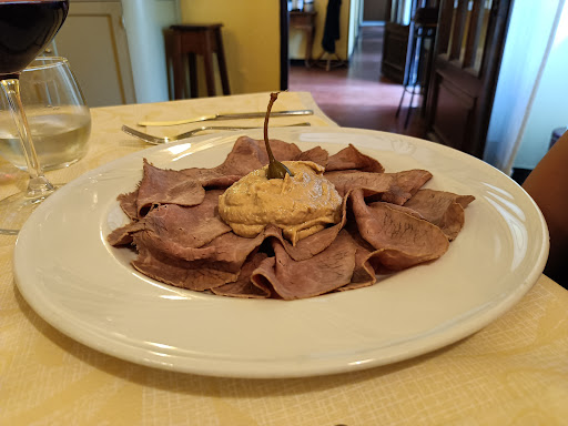 Read moreSono andato per un pranzo in gruppo e abbiamo optato per il menù degustazione. Un po scarso di quantità :l'antipasto era un misto salumi .Le pappardelle ai funghi e i ravioli al ragù erano pochi ma buoni. Il contorno di verdure grigliate consisteva in tre strisce di peperoni , tre di carote , tre di zucchine e due fette di melanzane , per sei persone non usciva neanche una verdura a testa .Il secondo era a scelta tra brasato al vino o tagliata semplice . Il brasato erano 2 fettine sottili ma buone , la tagliata non era una tagliata , ma una bistecca troppo cotta a strisce che mi ha lasciato deluso. I dolci erano semplici ma buoni. Do solo 3 stelle per la pochezza delle porzioni in generale , del contorno, e della finta tagliata stracotta. Magari ritornardo e ordinando alla carta cambia la qualità e...