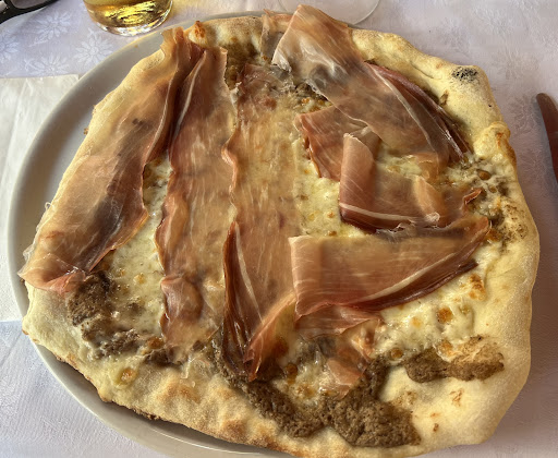 The tagliatta were thin strips of beef, one third of which were sinewed, mixed together wildly on rocket with small pieces of grana. A whole piece of entrecote cut into strips could not be recognized either visually or in terms of taste. The truffle spagetti consisted of a salty "truffle" sauce with tiny truffle dots. It seemed strange that the same dish was later served at the next table with recognizable truffle slices. However, the pizzas topped with fresh ingredients, unfortunately not chosen, looked sensational.