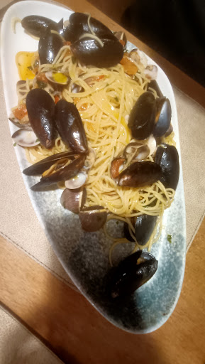 Read moreUno dei pochi ristoranti aperti dopo le ore 14.30 ( chiude alle ore 15). Prima di recarmi , con il mio compagno, ho chiamato per sapere se la cucina era ancora aperta a quell'ora . Mi è stato risposto che la cucina era ancora aperta se fossimo arrivati dopo pochi minuti, così dopo appena 4 minuti siamo arrivati, grazie all' aiuto di Google Maps, non essendo del luogo. L' accesso non è nel punto che segnala Google ma , a pochi passi nella zona pedonale. Ci tengo a precisare che il menù è a base di pesce oltre alla possibilità di mangiare la pizza. Appena entrati ci hanno fatto accomodare subito e preparato il tavolo. Il mio compagno ha ordinato un piatto di spaghetti ai frutti di mare, con vongole, cozze e gamberi. La porzione era molto abbondante, sembrava una porzione per due. Il pesce molto fresco che sapeva " di mare" , lo spaghetto un tantino troppo cotto ( io l' avrei preferito un po' più al dente, ma questa è solo questione di gusti). Io ho una leggera intolleranza al glutine, ma ho comunque ordinato una pizza ,avendo letto che l' impasto era a lunga lievitazione ( con la lunga lievitazione il glutine viene abbattuto). La pizza da me ordinata era a base di pomodoro, mozzarella di bufala, pomodorini e pesto. Ottima davvero, leggerissima, ben cotta, davvero molto digeribile. Cortesia e servizio veloce da parte di un ragazzo molto giovane ma molto rispettoso del lavoro che fa. Sicuramente se volete mangiare un' ottima pizza o del buon pesce in una località di montagna, questo è il posto giusto ! Costo di un primo piatto, una pizza, una coca alla spina, una birra media,...