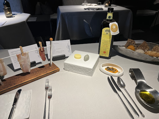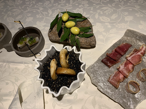Bereits das Aperò beeindruckt mit aromatischer Präzision: Von "Red Meat" über Aal mit Apfel-Holunder-Gelee bis hin zu einem hauchdünn ziselierten Schweineohr mit Olive wird hier die klassische Snackkultur dekonstruiert und neu gedacht – begleitet von schwarzem Trüffel, wie ein Gruß aus dem Unterholz.
