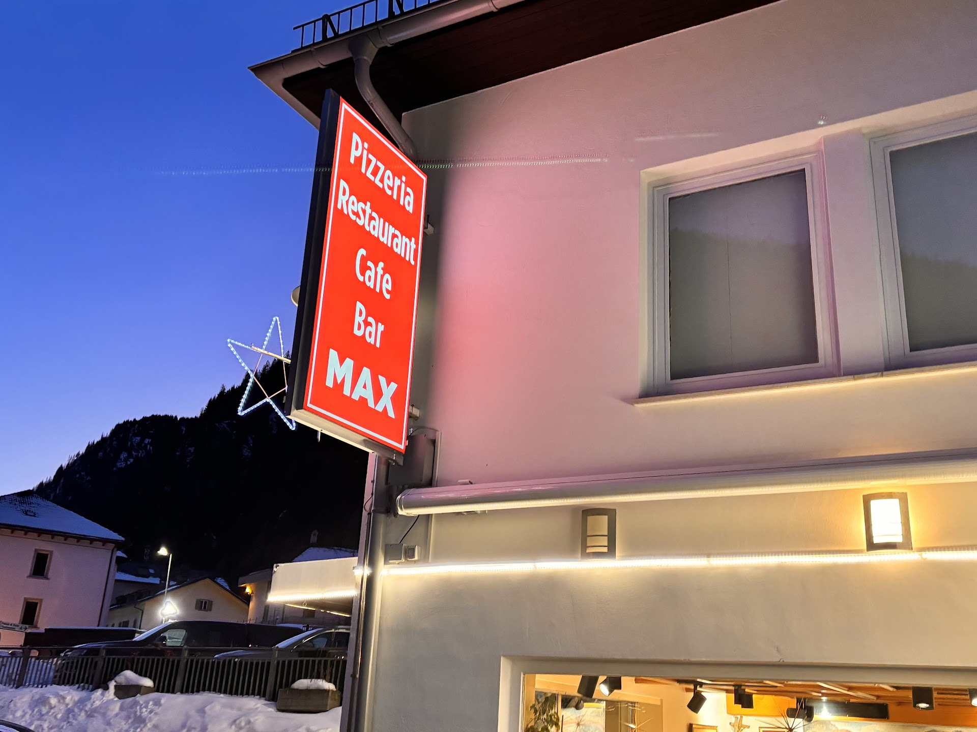 Read moreIch war letzte Woche mit drei Kollegen beim Restaurant Max essen, es war schon einiges los aber nicht soviel, dass der Service nicht auf uns aufmerksam wurde und uns nicht mal begrüßt hat, es wurden einige Tische frei und wir mussten ca. 10min warten bis jene abgeräumt wurden. Nachdem wir uns zum Tisch saßen mussten wir einige Zeit auf die Speisekarte warten, nachdem wir uns für unsere Speisen entschieden haben warteten wir noch ca 10-20min bis eine Kellnerin kam um unsere Bestellung aufzunehmen. Desweiteren ist uns aufgefallen, dass es im Lokal sehr warm war und die Sonne rein schien, auf jedem Tisch stand bereits der Parmesan was Hygiene technisch eigentlich gekühlt werden müsste, außerdem roch der Käse schon etwas verdorben und es waren einige blaue Punkte drinnen zu sehen. Zu unserer Bestellung: Ich nahm mit einem Kollegen zusammen eine Vorspeise(Empfehlung des Tages), die recht schnell kam. Für die Hauptspeise bestellten wir: eine Pizza, Hirtenmaccheroni, Kasnocken und die Schlutzkrapfen. Nach der Vorspeise ca. 15min später kamen die Kasnocken (waren nicht schlecht nur war viel zu viel Kümmel drinnen, dass man den Käse nicht mal bemerkte). Danach kam die Pizza(ansich nicht übel, aber der Teig ähnelte mehr einen Kuchenteig) Die Schlutzkrapfen kamen weitere 10min später an...jene waren geschmacklich recht gut aber etwas seeehr al dente. Naja nun fehlten noch die Maccheroni...da 40min nach unserer Bestellung es keinem im Service auffiel fragten wir nach, wir bekamen keine Antwort darauf ob jene vergessen wurden oder ob es noch etwas dauern würde. Somit fragte mein Freund schon wieder nach die Antwort :"Sie wurden vergessen." Ohne jegliche Entschuldigung... Mein Freund antwortete darauf: "Dass wir es etwas stressig haben, da er seine Kinder von der Schule abholen muss, und es sich eigentlich gehört Bescheid zu geben ob man die Speise noch möchte oder nicht, oder sich wenigstens dafür entschuldigt." ...Etwas später kam die Kellnerin, die die Bestellung aufnahm, sagte schnippig Entschuldigung und, dass es passieren kann. Leider war unsere Lieblingspizzeria nebenan noch zwecks Urlaub geschlossen, somit beschlossen wir wegen unserem großem Hunger nach der Bergtour dort einzukehren. Jenes Lokal wird jedoch keiner mehr von...