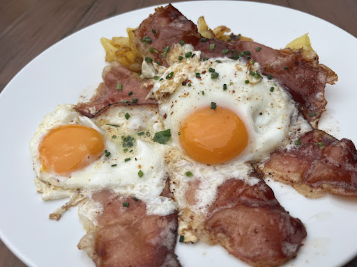 Besonders zum empfehlen die „Kaspressknödelsuppe“, das „Spiegelei mit Speck und Röstkartoffeln“, sowie das „Knödeltris“! 🥘