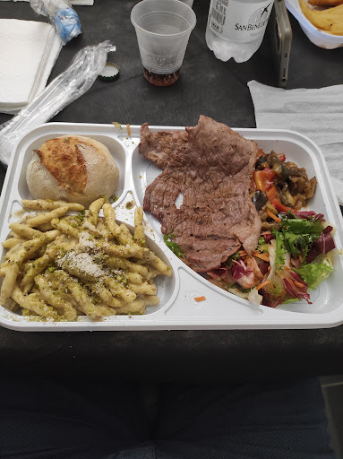 Read moreQuesto posto sembra una barzelletta alla Pierino!!! Abbiamo prenotato alle 10 di mattino per sei persone per le ore 13:00 arrivati nel presso del locale si erano scordati della nostra prenotazione e non avevano tavoli così è successo almeno ad altre 4 tavolate... Abbiamo aspettato una ventina di minuti e in qualche maniera ci hanno fatto accomodare uno sopra l'altro .. Alla richiesta di acqua frizzante avevano solo quella naturale e ci siamo dovuti accontentare... Dopo più di un'ora di attesa ancora non avevano portato nulla... Pasta servita fredda su piatti di plastica tutto insieme primo secondo e contorno. Sembrava di mangiare alla mensa dei poveri.La sala si è trasformata in un salone di risate isteriche di incazzature varie... Per fortuna i "compagni di banco" erano simpatici e abbiamo fatto amicizia con i vicini con la nostra stessa sfortuna di essere entrati in questo...