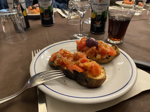 The restaurant was busy when we walked by at lunch time so we thought it would be a good place to try for some local pizza in the evening . Got the impression that we annoyed the staff by showing up to eat just after 7pm, apparently too early for Italians! Basically had the starter thrown onto our table by the grumpiest waitress I have ever seen. Seemed good value for money but my husband started feeling unwell before we even left and ended up in hospital the next day with food poisoning. Wouldn't have been surprised to discover the chef (who must have had his feet up by the fire when we arrived) deliberately put rotten salami on my husband's pizza for the tourists who arrived too early for their liking. Do...