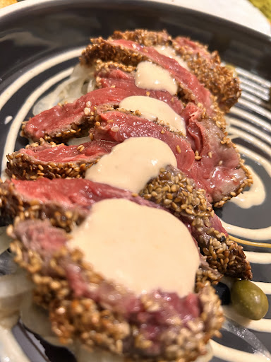 Yesterday evening me and my fiancée decided to check this place after many suggestions from our friends. When we arrived the place was empty and we were warmly welcomed by the owner (at least we think she was) and sat down at a table of our choice. She shortly after brought the menus so that we could decide what to eat. When we were ready she came to take the order, in which she gently responded to our requests and advised us for the better, all the while being very professional and meticulous. We settled down for a plate of cold cuts from Spain as an appetizer to share with a glass of Metodo Classico, and a Florentine steak from a Portuguese cow as the main dish, also to share since it was almost a kilo, and a side dish of vegetables. Shortly after she brought us some bread and a welcome entree on the house. The wine was really fresh and had a really sweet aftertaste. The cold cuts were delicious, and so was the paté of olives brought with them. The bread was still hot as if it had been just made. It was perfect. After the entree she brought us 8 unique kinds of salt to pair with the steak, and then the steak, still sizzling on the black marble, with an aroma that was mouth watering. We sadly had to leave because of a migraine that brought my fiancée to tears but we will surely return because everything was perfect, they even packed the leftover food for us to take home. The part that made our evening was the kindness of the owner, that alone deserves another visit. Surely we’ll recommend it to...