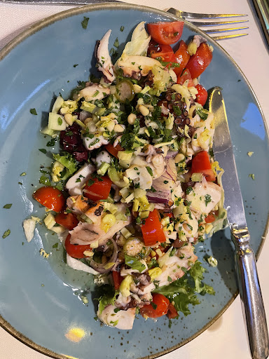 Read moreAbbiamo cenato in questo ristorante proposto da una coppia di amici che lo frequenta spesso, un gruppetto di amici che è stato subito accolto con cordialità dal proprietario/Chef che è molto presente in sala. Giacomo propone, consiglia e illustra piatti ed ingredienti senza essere invadente e senza infastidire. Fondamentalmente si sceglie tra una giusta lista di antipasti, primi e secondi a base di pesce, ma per chi non gradisce, vengono proposte allettanti alternative (la tagliata di Angus è spettacolare!) I piatti sono ben presentati e nelle giuste proporzioni, ma sopratutto vantano ingredienti freschi e di qualità. Siamo stati tutti molto soddisfatti, anche dei dessert (buono il cannolo) Abbiamo accompagnato la cena partendo con un prosecco e proseguendo con un ottimo Sauvignon Italiano. Personale di sala cortese e professionale. Ambiente moderno ma accogliente, adatto anche per una bella cena di coppia. Promosso, sicuramente tornerò per una cenetta...
