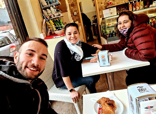 Punto forte è sicuramente la giovane donna che sa fare bene il suo mestiere. Cordiale, ascolta il cliente con attenzione e nonostante abbia preso caffè con ghiaccio e brioches vuota mi ha lasciato occupare un bel posto all'interno del piccolo locale e ho pagato con il pos senza problemi soliti di altri posti "non funziona, al momento non c'è rete...etc etc" il bagno è fruibile dietro richiesta di una chiave con enorme portachiavi forse per evitare che la clientela dimentichi di riportare la chiave. Lunedì mattina ore 09.30 perciò se il bagno non fosse stato più che pulito avrei come minimo levato 2 stelle. Torniamo alla qualità dei prodotti. Probabilmente il motivo è da individuare nella centralissima posizione del localino che gode non solo del parcheggio del supermercato attaccato ma anche di uno spazio esterno coperto con tensostruttura. Purtroppo il caffè non lo.consiglio affatto, veramente...