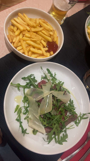 Abbiamo ordinato una tagliata di manzo con patatine, e possiamo dire che la qualità della carne era eccellente, cotta alla perfezione e davvero saporita. Anche le patatine erano gustose e ben fatte. Il servizio è stato impeccabile, veloce e cortese.