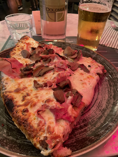 The venue is very pleasant and always full, which speaks volumes about its overall appeal. The pizza al trancio is good, well cooked, well leavened and seasoned just right. There is a wide variety of flavors to choose from and the staff is friendly and professional. Recommended!