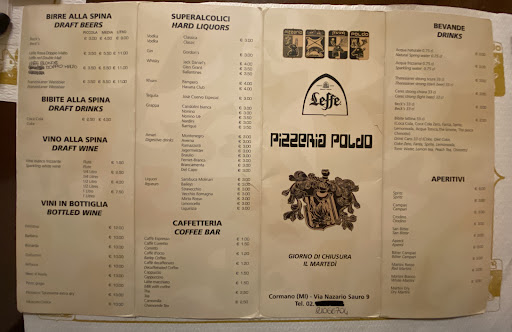 Wow! What a great Pizzeria we experienced in Cormano! We love staying in this small town where you are surrounded by locals mostly while dining. Maestro de Pizza is the only way to describe POLDO and his wonderful staff. For a few seconds after my first bites of this massive fluffy Pan Pizza, i thought I went to Pizza Heaven!.The Menu has close to 20 different pies to savor?