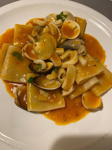 Buon potenziale! Scoperto casualmente, devo dire che nel complesso è un buon ristorante, devo però far notare piccole cose che potrebbero fargli guadagnare le altre due stelle mancanti! Per prima cosa bisogna ridurre i tempi di attesa a mio avviso un pochino lunghi (non intendo dire che le portate debbano arrivare una dietro l'altra ma nemmeno dopo 30 minuti). Prestare più attenzione ai piatti, nel secondo si erano dimenticati un ingrediente presente nel menu... e per rimediare mi è stato portato a parte chiedendo scusa. Non mi è stato chiesta la cottura desiderata della carne, è arrivata al sangue, io la mangio anche cosi, ma se me lo avessero chiesto avrei chiesto una media cottura, c'era un pezzo di grasso molto spesso e duro, forse avrei preferito che lo avessero ridotto, così faceva solo volume nel piatto. Non mi è stato portato il pane e nemmeno chiesto se lo gradivamo. Il polpo con le patate era un pochino duretto (io sono un amante di polpo e me ne intendo abbastanza) e privo di qualsiasi forma di sughetto o condimento, personalmente l'avrei gradito (ma probabilmente era mancante per via della cottura credo al forno, è l'unica giustificazione che posso darmi per averlo trovato così rinsecchito). Nel complesso comunque la cucina è buona e ha del potenziale penso di tornarci e di dargli un'altra possibilità! I primi abbondanti e molto buoni. Bagno pulito (magari sarebbe opportuno rimuovere qualche ragnatela) e i davanzali dietro le tende, meglio non parlarne…