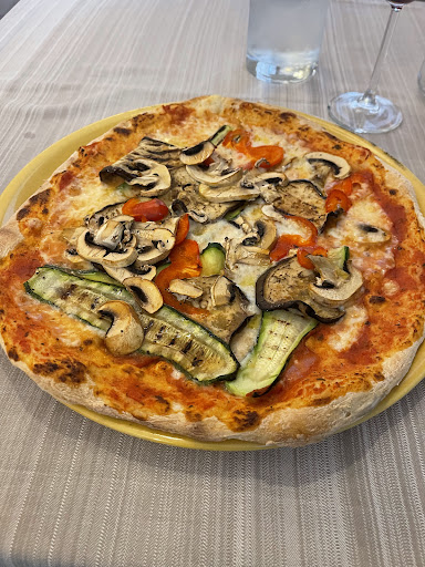 I had a pizza ortolana, the size was standard, it was great with plenty of fresh, grilled vegetables. The style is close to Roman, the base was soft but firm and the crust was crispy. It was a bit difficult to cut the pizza with the cutlery but it wasn't a big issue for me.