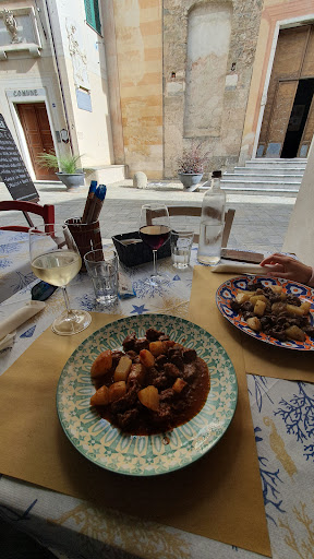 Read moreIeri sera, 22/7/2023, mi trovavo casualmente a Zuccarello a visitare il paese (bellissimo tra l'altro) e verso l'ora di cena vidi questo ristorante sotto i portici. Visto che dovevo mangiare decisi di fermarmi lì e mai scelta fu più azzeccata! Siccome non sono un gran mangione ho deciso di prendere solo un piatto di moscardini coi piselli e, a parte l'abbondanza della porzione che era eccezionale, un gusto, una morbidezza che definire soavi è poca cosa. Alla fine ho pure fatto scarpetta e ripulito il piatto col pane! Neanche mia mamma e la mia compagna fanno dei moscardini coi piselli così buoni e probabilmente ce le porterò ad assaggiarli. Ottimo anche il tiramisù fatto da loro e dopo un caffè ho assaggiato l' "amaro del ciclista", un ottimo amaro che è stato la perfetta conclusione di una cena eccezionale. Un complimento speciale alla cameriera Katia (o Catia) per il servizio veloce e l'attenzione al cliente. Non vedo l'ora di tornare per assaggiare le altre specialità, anche se quei moscardini mi sono davvero rimasti nel cuore e avrò difficoltà a scegliere qualcos'altro sapendo quanto sono buoni. A presto....