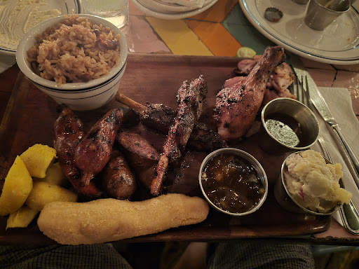 a) Watermelon salad should always be made to order. We were served one that had been sitting out, and therefore soggy and swimming in several ounces of fluid. Also the watermelon, the supposed star of the dish, was overly ripe, partially gone bad already. It’s a disgrace, priced at $15. b) Sweet potato salad was too sweet, I think made with added sugar vs sweet potatoes (aka yams). Also was cold, served right out of fridge, vs the room temp that the dish requires. Absolutely disgusting, sent back immediately. c) Curry shrimp had a nice aroma. It was however way too strong to envelope the sweet meat of delicate shrimp that begs a much lighter hand in sauces. That curry strength would have been appropriate for a root vegetable for instance, given you want to rely on the sauce for the overall taste for when the main ingredient doesn’t have a taste that will come through. Burying shrimp in that sauce is not cooking; it is murder. d) The chicken jerk pasta was overcooked. The coconut cream was a good choice given its harmony with the jerk sauce. Pasta should have been al dente, so the overall dish would not have the uniform soft texture it had, almost like a stew. e) Banana cream dessert was made with artificial ingredients - def no banana or real cream in that. Even my kids that normally devour anything with sugar said it tasted ‘weird’ and dropped it. They ate the cookie from the dessert and the vanilla ice cream we ordered, clearly (and thankfully) both store bought. f) The complimentary pepper pot soup shot was the only good thing that came out of that kitchen. It was the right amount of spice and the taste of callaloo shined through.