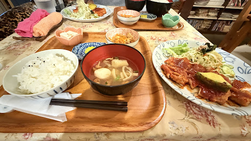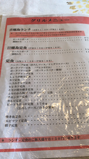 2025.9.23訪問。 旅行中、網走刑務所からの帰りに寄りました。 夕飯食べられるところがなかなかなくて助かりました。 階段を上がった2階部分が店舗で、ちょっと初めてだと緊張する階段です。上がっていいのかな?みたいな。 でも、お店に入ったら途端にアットホームで居心地のよい空間が広がっています。お店の方(店主さんでしょうか?)はニコニコと優しい笑顔の女性で、対応は終始丁寧。常連さんが多いようでしたが、初めての私たちが居心地悪くなることもなく。 座席はソファ席とテーブル席があって、常連さんらしきお子さん連れのご家族とご夫婦はそれぞれ「いつものとこ」って雰囲気でソファ席に座ってました。 ケンミンショーで見てからずっとポークチョップが食べてみたかったので、注文。ケンミンショーでは飲み屋さんのコッテコテのものが紹介されてましたが、こちらのは優しげな雰囲気。てかこれは本来のポークチョップであって、県民のみなさんが欲しがるものとは違うのかな…? なんにせよ、体に良さそうな小鉢とお味噌汁がついて、肝心なポークチョップはケチャップたっぷり。一口大にカットされてるので食べやすく、味もしっかりついてるけど濃すぎず、ごはんが進むいい塩梅でした。 ちなみに、店内の奥にぎっしりと漫画が置いてあります。鬼滅の刃みたいな新しいものもありつつ、大半は懐かしい系。北海道だし、とカムイ外伝読みながら過ごしました。 駐車場は、お店の1階部分に数台、お店の裏手に数台分あります。裏手の方は、かなり入り口と切り返しスペースが狭いので、大きい車の方は気をつけた方がいいです。 ちなみに、私はキャラバンのワイド、ロングなのですが、隣びっちりに停められてしまって帰りに出る...