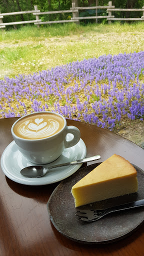 Being a big coffee lover in Japan is a big challenge. I am always on the hunt for good coffee and that has become a daily routine on all my holidays. In Japan it involves lots of trials. Chanced upon this place in Google and drove here to try. Totally legit place, can totally tell the standards from their setup and equipment. They roast their own beans and the cappuccino is well extracted no sour bitterttaste. The cheese cake is excellent too creamy and not too sweet. It is facing a windy and beautiful greenery amongst lavenders. Totally relaxed highly recommended. Easily the best I had in Japan. The cheese cake they served here is excellent too. Light fluffy and rich and creamy.. Totally goes well with the great cuppa. Do note they stop serving coffee and tea at 5pm but...