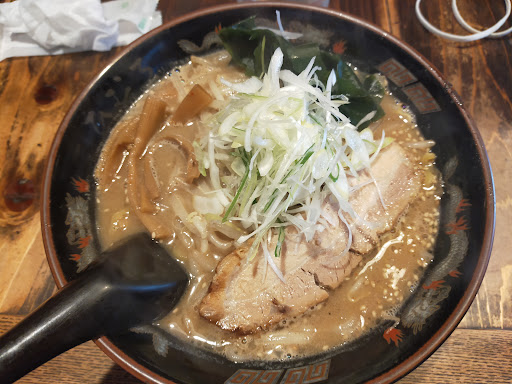 日曜日の13:00過ぎ、最近、お目にかかれていない札幌味噌バターコーンラーメンを食べに訪問。大盛りを注文しました。3人待ちで店内へ。見廻すとテーブル席1つとL字カウンター席9席。店長と若い店員さんの2名。北海道ラーメンと謳っているが、普通に穏やかな雰囲気。券売機に気が付かず口頭で注文してしまったが、優しく受付頂いた。期待に胸を膨らませて待っているとメニューに豚骨ベースとあり、やや不安に···。味噌豚骨ラーメン、バターコーン乗せ···って、食べたことないなぁ。 でもって、「お待ちどうさま」と登場。 ラーメン丼ぶりの中心にうず高く積み上げられているスライスされた葱、麺を掻き分けて凹みを作り、器のふちにいるバター(結構、分厚い)を凹みに移動。一気にバターを溶かし、出来たバター風味のスープの上に充分な量のコーンも大移動させて、味噌バターコーンスープを完成。そのスープを潜らせるように麺を引き上げてひと口目を啜りながら、口一杯に頬張り、かん水の効いた麺を咀嚼する。札幌味噌バターコーンラーメンが口のなかで踊る瞬間、あぁっ、美味しい·旨いじゃないか。ドンドン食す。ふちに残っているコーンもスープと馴染みはじめて穴あきレンゲで掬いながら頬張ると当然、美味い。また来よう。わかめ?ちょっと塩味が強くなり、ちょっと一瞬、味変。また、もとに戻り、味噌バター。後で教えて頂いた茹で前で260gの大盛り麺は、結構な量なのに一休みもせず完食、本当に大満足の1,290円(=900+バター120+コーン120+大盛150)。 (実は、厚切り煮チャーシューが豚骨ベースの味噌󠄀スープと一緒に最後に残った。個人的には、頑張ってチャーシューは食べた、スープは飲み干せなかった。もやしかチャーシューかが選べるといいなぁと頭をよぎった。)次回は、引き続き味噌バターコーンか...