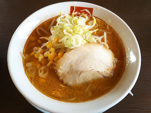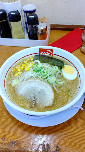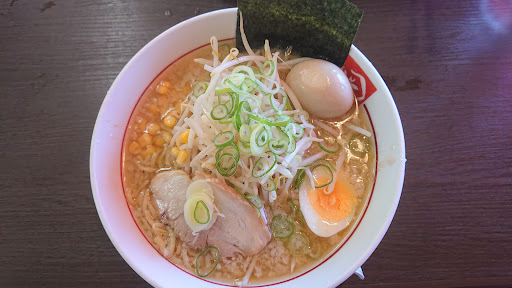こってり味噌ラーメンを注文しました。 濃いめの味噌味に背脂がたっぷり表面に浮いています。 他に、もやし、海苔、ネギ、チャーシュー、コーン、ゆで卵とボリューム満点です。 特にチャーシューは厚切りで、柔らかくとてもおいしかった。 麺は太麺。濃厚なスープに麺が絡み付きます。