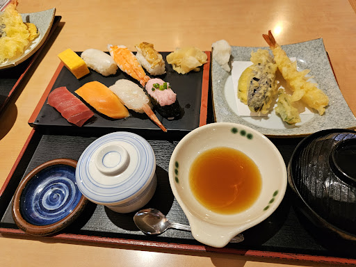 Read more平日、19時30分に入店。 飲食店を探すも走ってきた道で なかなか見つからずたまたま見つけた こちらにお邪魔しました。 時短とかで20時くらいまでかと 思ったらこちらは21時閉店になってました。 お客さんはそこそこ居ました。 お寿司と暖かい蕎麦セットを 注文。お寿司はネタも大きめで 味もまあまあでしたが、セットの 蕎麦がぬるいし麺がのびてて 不味かった。家族が暖かいうどんの セットを頼んだがやはりこちらも ぬるかったそうで… お店が悪い訳じゃないが 時短要請だお酒の提供はと言ってるのに ビール飲んで大きな声で武勇伝を語る 若者。割と離れてるのに話が 丸...