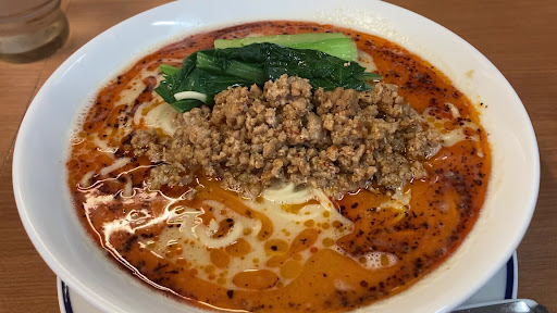 担々麺(激辛 麺大盛)とライスをいただきました。 ふわっと胡麻の芳ばしい香りが立ち上がります。 スープは乳白色に辣油や豆板醤の唐辛子の赤味が加わる。濃厚な舌触り。一味唐辛子が振りかけられており、辛さは十分。テーブルに辣油がありますが追加は要りません。 挽き肉は醬油ベースの味付けがされています。 テーブルに花椒が備えられており密閉容器を開けると揮発するように香りが立ちこめます。風味が強いので香りを楽しむ程度に少しだけ振りました。 ご飯は炊きたてでふっくらとした炊き上がりです。スープで食べてもスープをかけても美味しくいただけました。ランチライスはお代わり可でお得です。