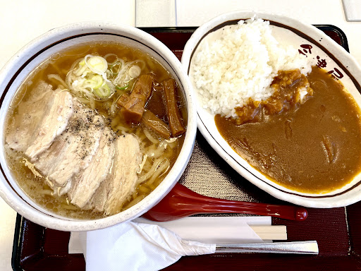 Read moreラーメンとん太をチェーン展開する秀穂‘が運営するラーメン店‼︎ ラーメンとカレーのセットメニュー、喜多方ラーメンあっさりセットを頂きました。 ラーメンは、臭みが無く透き通った豚肩醤油のあっさりスープに、中太平打ちの縮れ麺がよく絡みスルスル頂けました。 この麺、米粉を加えた多加水麺‼︎ 柔らかくモチモチした食感で噛まずに喉越しが楽しめます。具材は焼豚と極太メンマ、ネギとシンプルでしたが、福島県を代表する喜多方ラーメンや白川ラーメンと同じ優しい味‼︎...