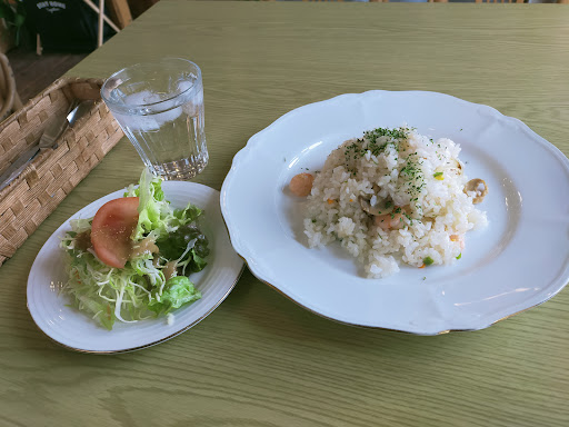 阿賀野市にある小さなカフェ。 名前もかわいい〜 お友達と伺いました。 日曜日のお昼時でした。 ママさんが一人で切り盛りしてました。 先客が一組いらっしゃいました。 店内は、カウンターとテーブル席4組位だったかな? 私達は窓辺に陣取り(笑)、食事とお喋りで楽しく過ごせましたよ。 私は、ドリアセット。(コーヒー付き) お友達は、ブランチセットのパスタ多めをオーダー。(コーヒー付き)