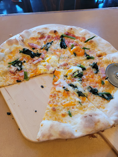 ランチタイムのいちばん人気はやはりプッタネスカらしく、だいたいのテーブルで注文されてました。私も食べましたが間違いない味です。 その後スピナッチピザを注文。私は初めてですが卵をトロッと崩して食べるわりとまろやかな味です。大きいですが薄生地なので頑張れば食べれます(笑)