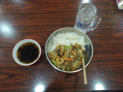 1番あとから届く木耳と卵炒めはそこそこ美味しいが予想した味からはかけ離れて。 まとめるとらーめんは薄味系で、炒飯も木耳と卵炒めも、らーめんのスープも、セットのスープも、全てがびっくりするほどヌルい。 大人数だから仕方ない、作り方が想像ができてしまう。