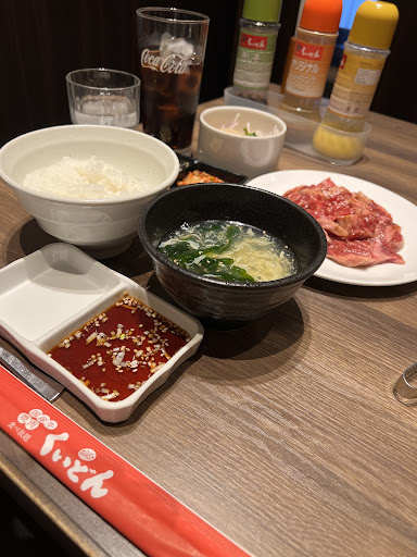 Read more普段は焼肉どんどんが多いのですが、ゴートゥーイートポイントがあったので、初利用。 盛りだくさんファミリーセット大人2名、子供2名分 9,812円を頂きました。 接客は皆さんお若いですが、丁寧で気持ちが良いものでした。 コースだと網がステンレスの厚みのあるものになります。端で焼くスペースがあり、焼きすぎにならずいい感じ。どんどんとはこの辺りが違います。 お肉、タレ、スープ、冷麺、いずれも美味しいです。 ボリュームはかなりあって、食べ放題で無くても満腹です。 何よりゆっくり食べられます。 どんどんとの価格差2〜3,000円は十分あると思います。 店内も騒がしく...