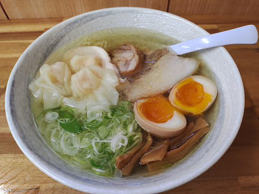 Read more埼玉にある自社の営業所に行く用事が出来たので、たまたまラーメン店をいくつか見てた時に目に付いたこちらに入店。 ラーメン店と言うより、何かのお店を改造して作った感があるレイアウトで、何故か厨房の方角を向かないカウンターがあって不思議に思いました。店の外観の赤と黒のデザインとは打って変わって木目調の床に「WELCOME」のオーナメントの様な装飾。 1番基本の清湯ラーメンにワンタン煮玉子トッピングを注文。Googleマップですこぶる評判が良かった通り、スープは下が見える程透き通っているのに味はしっかり濃厚。それでいて塩辛くないのでするする飲み干してしまいました。 チャーシューと鶏のササミのような具は割と普通な感じでしたが、ワンタンが美味い。味の主張がはっきりあります。 お昼時に行くとライスが無料だそうですが、頼みませんでした。ただ、あのスープをご飯に掛けてお茶漬けの様にすする事を想像すると少し後悔。 餃子は割と普通な感じでした。野菜と言うより肉餃子で、良くある餃子の味。 ただ、ほとんどこの店に行く事は無いだろうから主力の料理を堪能出来て...