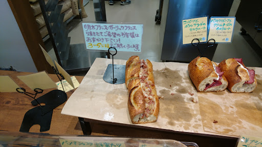 Read more追記 クリームパンに星4 平日のお昼に訪問。平日なのでパンの種類はたくさんありました。 明太フランスパンはアンデルセンやリトルマーメイドとかとそんな変わらない味。でもパン生地が美味しいのでとても美味しく感じました。塩パンは厳島の藻塩パンやPaulの塩パンが好みなので普通かな。でも家族は塩の量が絶妙に良いとのこと。 塩のベーグルは塩パンで良いかなって思いました。ベーグルは和ベーグルになるかと思います。NYベーグルや生地に練りこんだベーグルが好きなので自分の好みからは外れてるんですが、コーヒーの味のやつが気になってはいるんで次回試してみようかなって思うくらいパン生地が美味しく感じます。