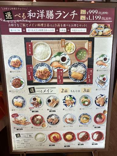 選べる和洋膳ランチが凄い事に… ごはんの代わりに オムライス、ビーフハヤシのオムライス、特製ハヤシライスがえらべ、 それを軸におかずやサラダが選べ、 それに味噌汁、お新香が付く。