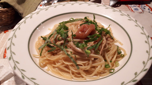 Read more店舗の雰囲気は良いです。 注文した牡蠣とキノコのトマトスパゲッティーは舞茸と玉ねぎベーコンほうれん草のはいったトマトスープに生パスタに盛ってある感じ、その上に軽く火を通した牡蠣が載っており、粉チーズとかいわれがトッピング、れもんが添えてあります。 トマトの酸味があるので、酸っぱいのが得意でない方はレモンをしぼらないほうがいいかも、牡蠣は、癖のない物を使用しているので、レモンをかけないほうが私は牡蠣の味が楽しめて良いと思いました。 ついてくるパンは甘めなので残ったソースを浸けて食べましたが酸味の効いたトマトソースとの相性は良いと思います。 生パスタは、私は歯ごたえがあるほうが好きなので、もう少し圧延回数が多い麺がいいと思いました。 クリームスープはコンソメに牛乳を入れた感じのさらっとしたスープでキャベツとベーコンが入っていました。 サラダはサニーレタス、レタス、きゅうりトマト、水菜、紫キャベツ、赤パプリカ、黄パプリカなどが入って、さっぱりめのドレッシ...