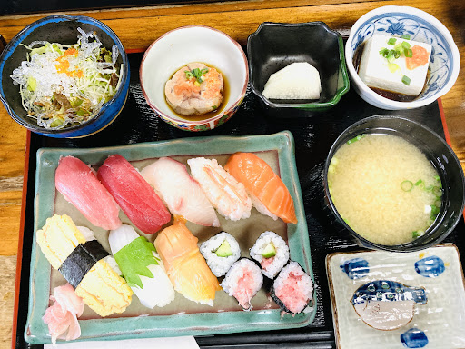 ランチBセットを注文しました。 ご主人から「ネット見て来たの?」って聞かれ「ハイ」って返事。 ネットに出た当初は、来客が突然増えて二人だけなので大変だったらしく、ここに来てやっと落ち着いて来たらしいんです。 ランチBセット、握りと巻物、アサリの味噌汁、冷やっこ、もずく酢、長芋、サラダ、とどれも美味しく頂きました。 私の様な大飯ぐらいにはちょっと物足りないボリュームでしたがコスパの高い優秀なランチでした。
